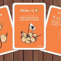 Ahoy, Tatey! Voyage on the high seas in a quest to save the Potato King! Program attacks to roast, mash, and fry enemy potato crews in battle, but keep yer eyes peeled for Potato King Cards. Agi-taters abound who may loot and hijack yer ships! Brush me barnacles – ye may be hooked!