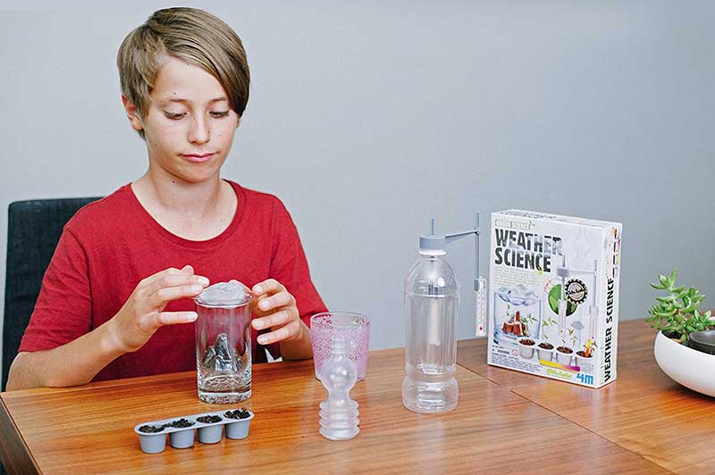 - You can experiment with static electricity which causes lightning, build a desktop water cycle model, and even make clouds in your palm.